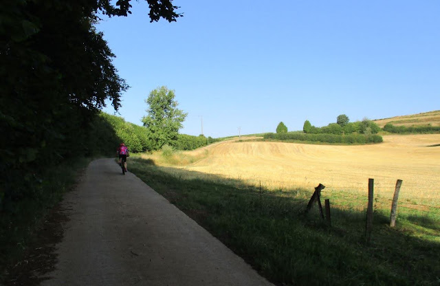 Dès lors le parcours alterne routes, pistes bétonnées, chemins agricoles et chemins larges caillouteux, le plus souvent en plaine avec de courtes portions sous bois tout en traversant de nombreux villages des environs.